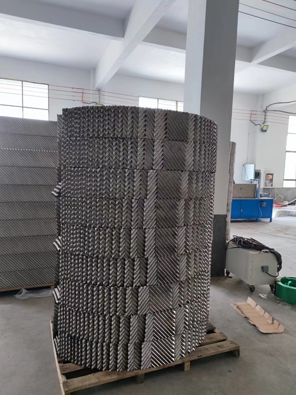 加工填料的塔徑范圍為φ150mm~12000mm以上。它是一種在塔內(nèi)按均勻幾何圖形排布,整齊堆砌的填料。它規(guī)定了氣液流路,改善了溝流和壁流現(xiàn)象,壓降可以很小,同時(shí)卻提供更多的比表面積,在同等容積中可以達(dá)到更高的傳質(zhì)、傳熱效果.還由于結(jié)構(gòu)的均勻、規(guī)則、對(duì)稱性,在與散裝填料具有相同的比表面積時(shí),金屬孔板波紋填料的空隙率更大,具有更大的通量,綜合處理能力比板式塔和散裝填料塔大得多,因此以金屬孔板波紋為代表的各種通用型規(guī)整填料在工業(yè)中得到應(yīng)用。用金屬孔板波紋填料改造板式塔效果尤為明顯。通過精心設(shè)計(jì)、制造、安裝和認(rèn)真操作等,可以做到工業(yè)放大效應(yīng)不明顯。由于規(guī)整填料具有壓降低、通量大、分離效率高等優(yōu)點(diǎn),在精細(xì)化工、香料工業(yè)、煉油、化肥、石油化工等領(lǐng)域的眾多塔器內(nèi)得到廣泛應(yīng)用。如在原油油水、油氣、油水汽二相或三相分離器中使用效果良好,獲得用戶的一致好評(píng)。
