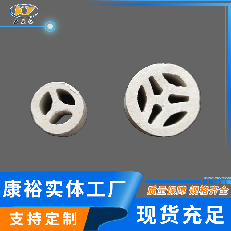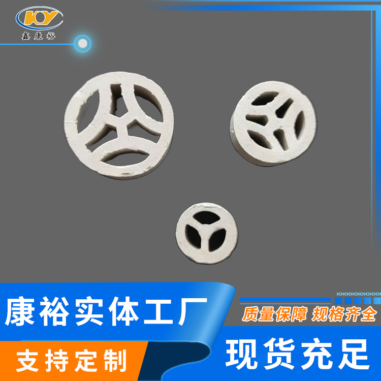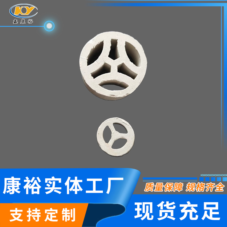 陶瓷三丫環(huán)因其優(yōu)異的工藝加工條件,如原料優(yōu)選,真空擠壓成型以及嚴(yán)格控制燒結(jié)工藝中的火焰氣氛,使得陶瓷三丫環(huán)具有瓷質(zhì)致密,色澤均勻,機(jī)械強(qiáng)度高,耐壓力沖擊,抗熱震性能好,耐搬運(yùn)不破損的優(yōu)點(diǎn)。同時(shí)陶瓷三丫環(huán)結(jié)構(gòu)空間性能好,床層使用通氣量大、比表面大、氣液分布均勻、阻力小、壓降低、強(qiáng)度高、氣液傳質(zhì)性能比一般填料好。