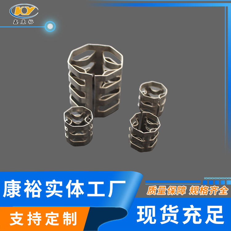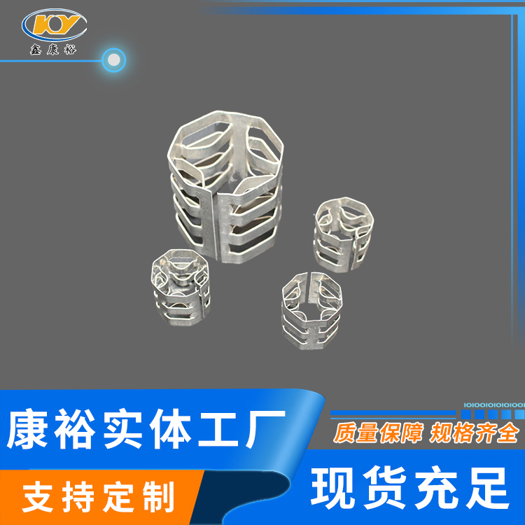 康裕金屬八四內(nèi)弧環(huán)類(lèi)似花環(huán)開(kāi)關(guān)的金屬填料,也稱(chēng)麥勒環(huán)填料。它的特點(diǎn)是環(huán)壁開(kāi)敞面積大,所以具有通量大、阻力小和傳質(zhì)效率高等特點(diǎn)。