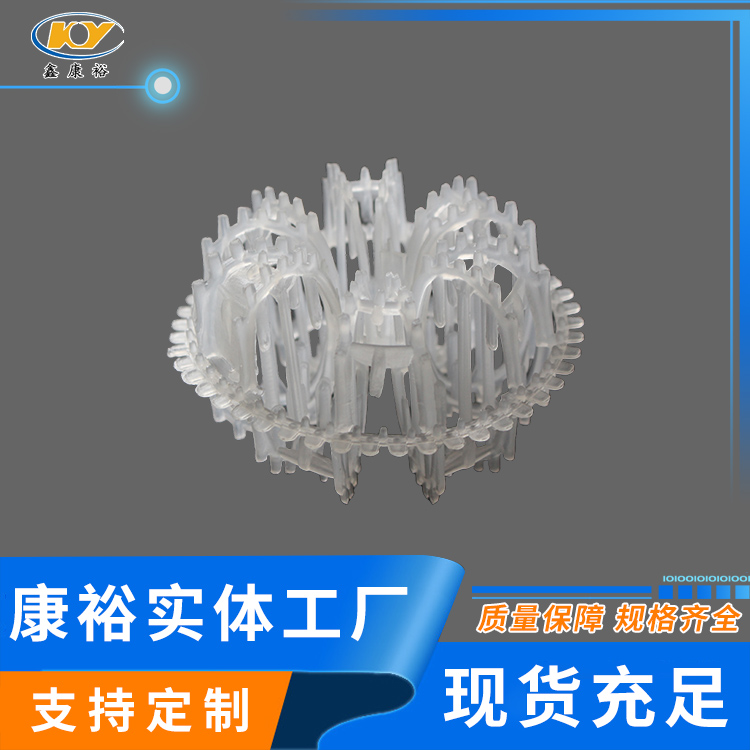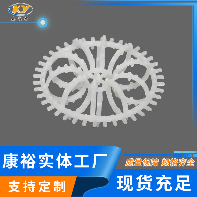 塑料花環(huán)填料早是由美國A.J.Teller于1954年研制開發(fā)出來的,故而常稱之為泰勒花環(huán)(TellerRosette)。由于填料的空隙處能有較高的持液量,可使塔內(nèi)液體的停留時間較長,從而增加了氣液兩相的接觸時間,提高了填料的傳質(zhì)效率?!』ōh(huán)填料也稱梅花環(huán)填料塑料花環(huán)填料是由12個小圓環(huán)按徑向排列而組成的一個大扁球體,很類似于一個螺旋形彈簧首尾相接繞成的一個圓球體。有的小圓呈A字;有的在小圓和大圓邊沿還帶有齒;有的外圍沒有大圓圈,只有里面的小圓組成等,客戶可根據(jù)各自的要求訂購不同種類的花環(huán)。