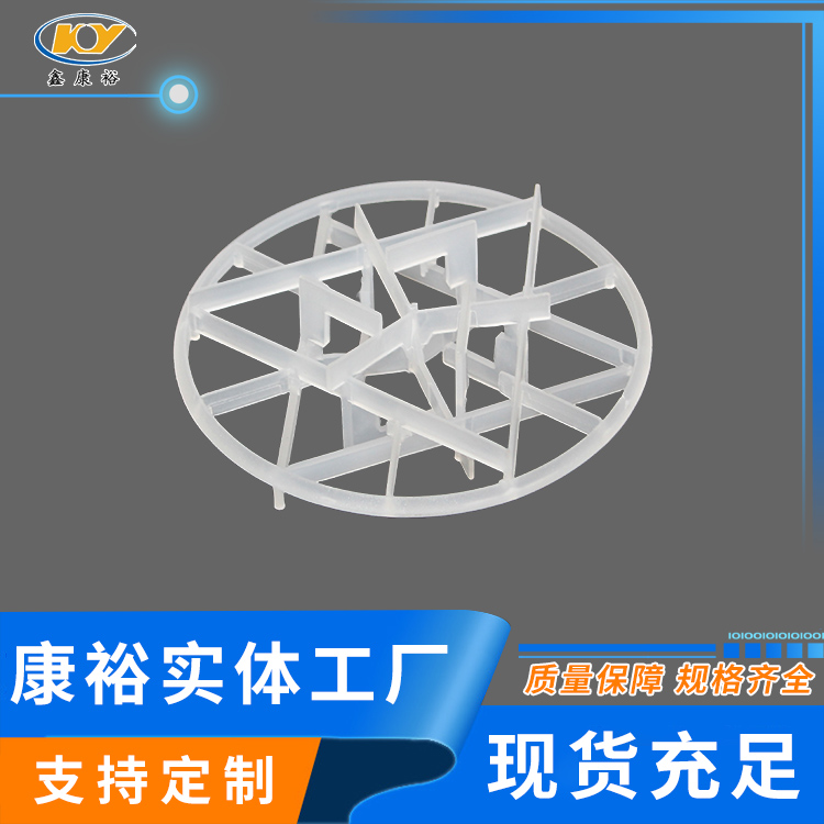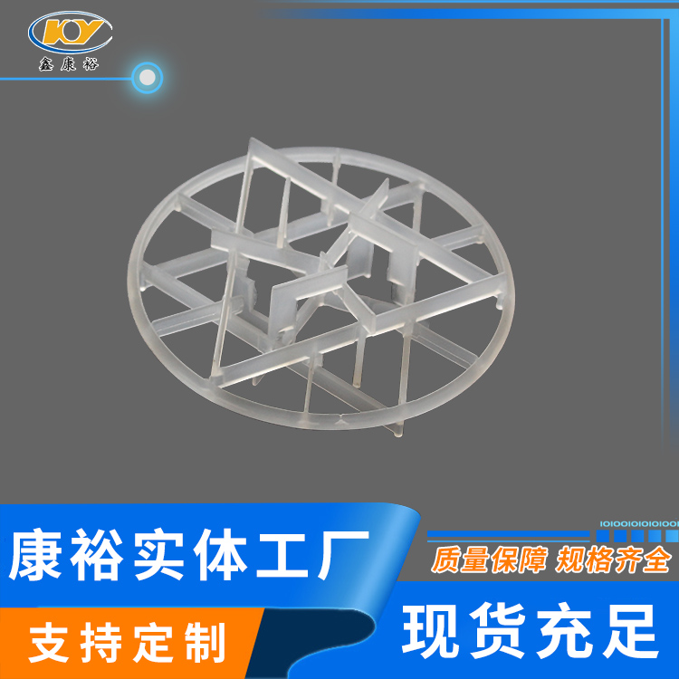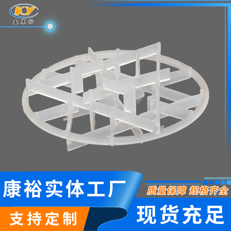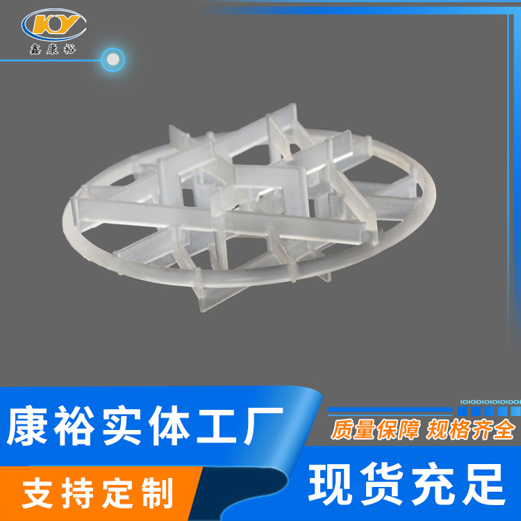 塑料雪花環(huán)具有空隙率大、耐熱、耐化學(xué)腐蝕,壓降和傳質(zhì)單元高度低,泛點(diǎn)高、汽液接觸充分、比重小、傳質(zhì)效率高等特點(diǎn)。在各種介質(zhì)中的使用溫度為60-150攝氏度,廣泛用于石油、化工、氯堿、煤氣、環(huán)保等行業(yè)的填料塔中。
